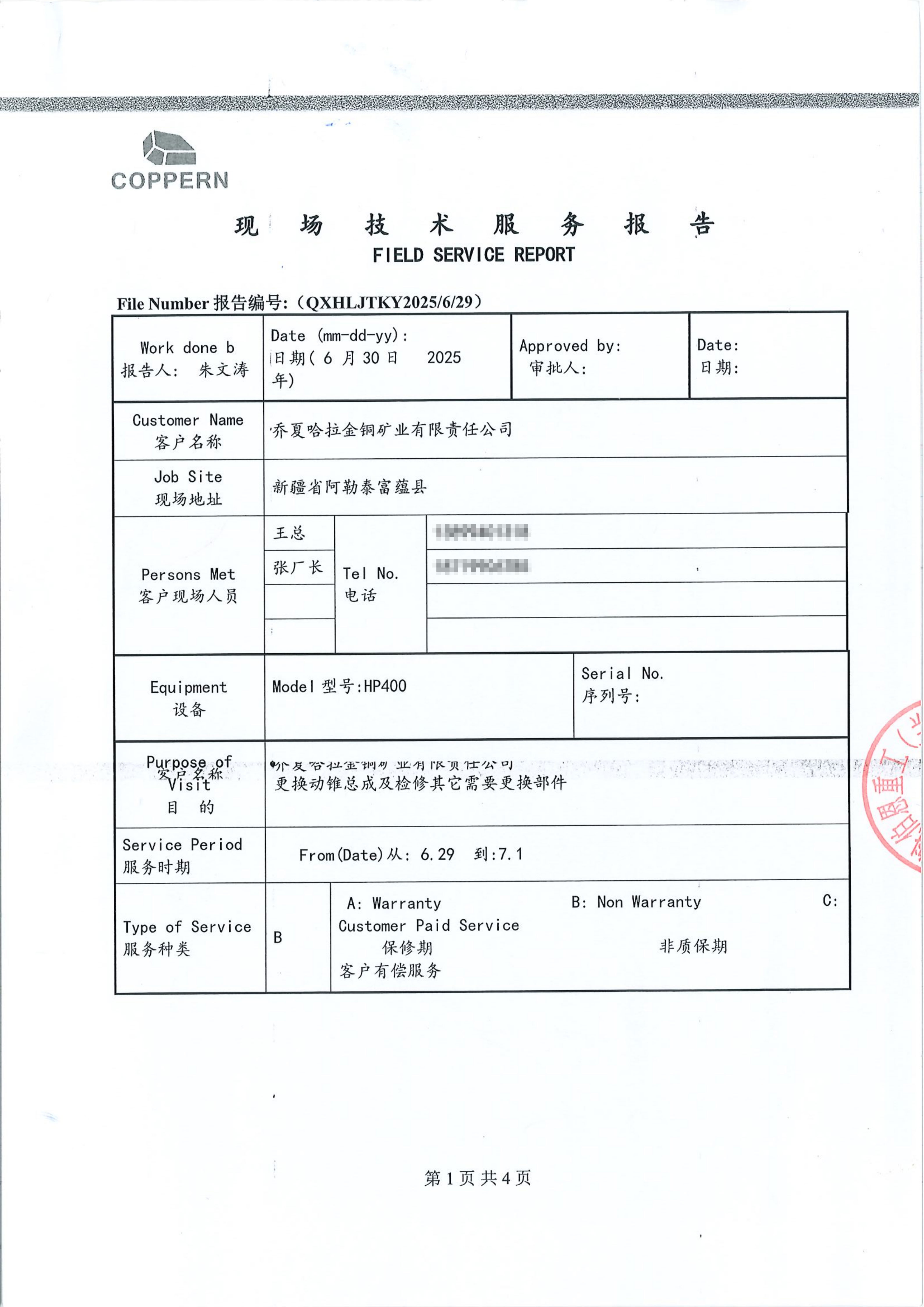 魁伯恩喬夏哈拉金銅礦業(yè)有限責(zé)任公司技術(shù)服務(wù)報(bào)告