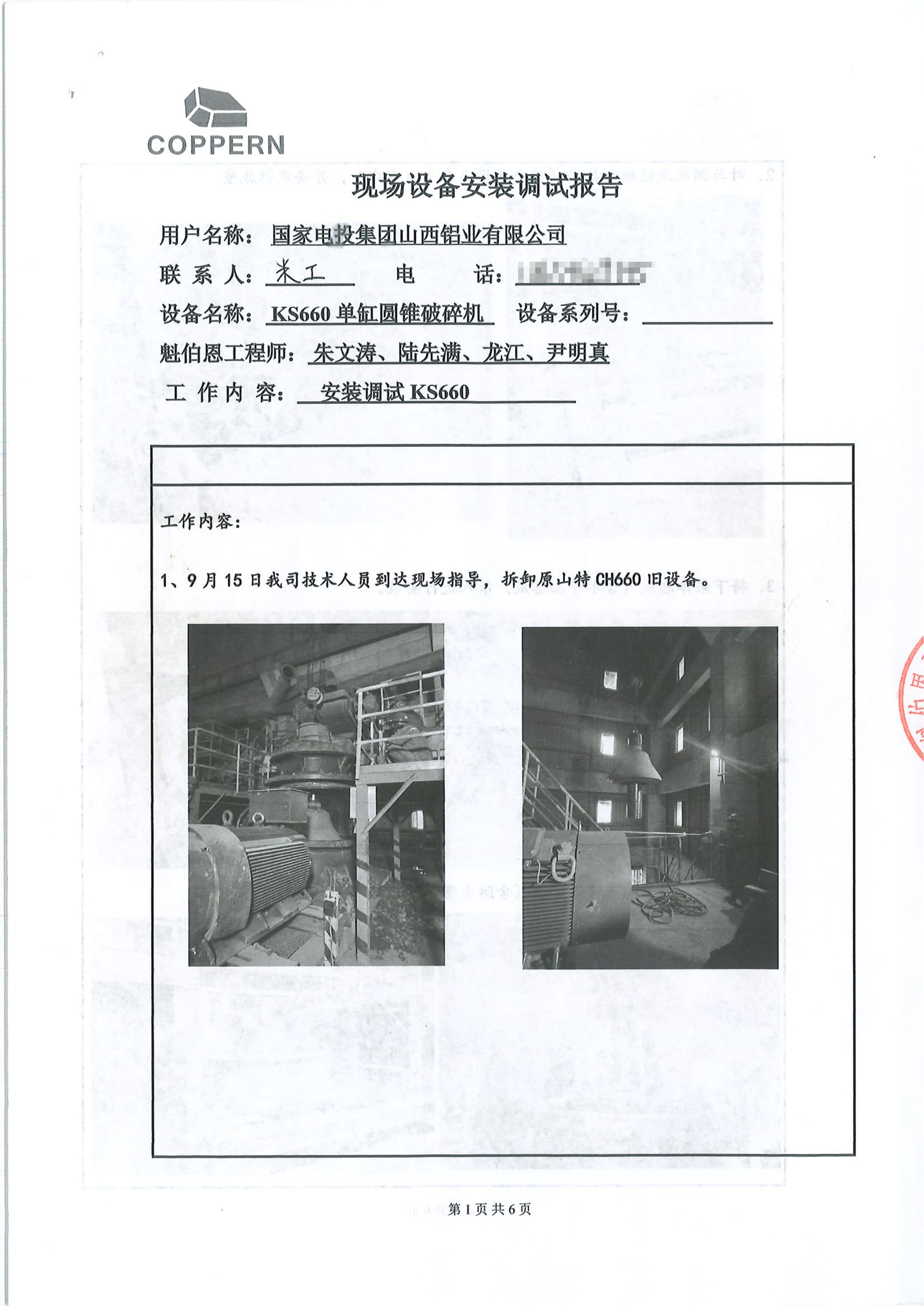 國家電投集團山西鋁業(yè)有限公司現(xiàn)場設(shè)備安裝調(diào)試報告