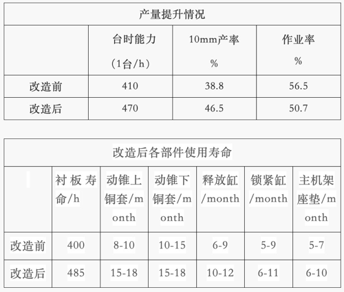 ? 魁伯恩長期合作的山東鐵礦客戶,通過魁伯恩技術(shù)團(tuán)隊(duì)對該礦山項(xiàng)目的改造和設(shè)計(jì),運(yùn)用了此方案,讓圓錐破碎機(jī)實(shí)現(xiàn)了高效運(yùn)轉(zhuǎn),能力提升10%,同時降低破碎機(jī)破碎系統(tǒng)的單位運(yùn)行成本。經(jīng)過長期的運(yùn)轉(zhuǎn),在運(yùn)行中不存在物料偏析的情況,料位穩(wěn)定,可保持?jǐn)D滿給礦的狀態(tài),消除襯套偏磨、環(huán)跳等現(xiàn)象。襯板使用壽命延長13%,銅套、釋放缸等備件的故障率降低50%,鎖緊缸壽命延長一倍(僅襯板消耗,每年可節(jié)約成本約20萬元,其他相關(guān)備件節(jié)約成本約6萬元),實(shí)現(xiàn)直接經(jīng)濟(jì)效率約28萬元/年。