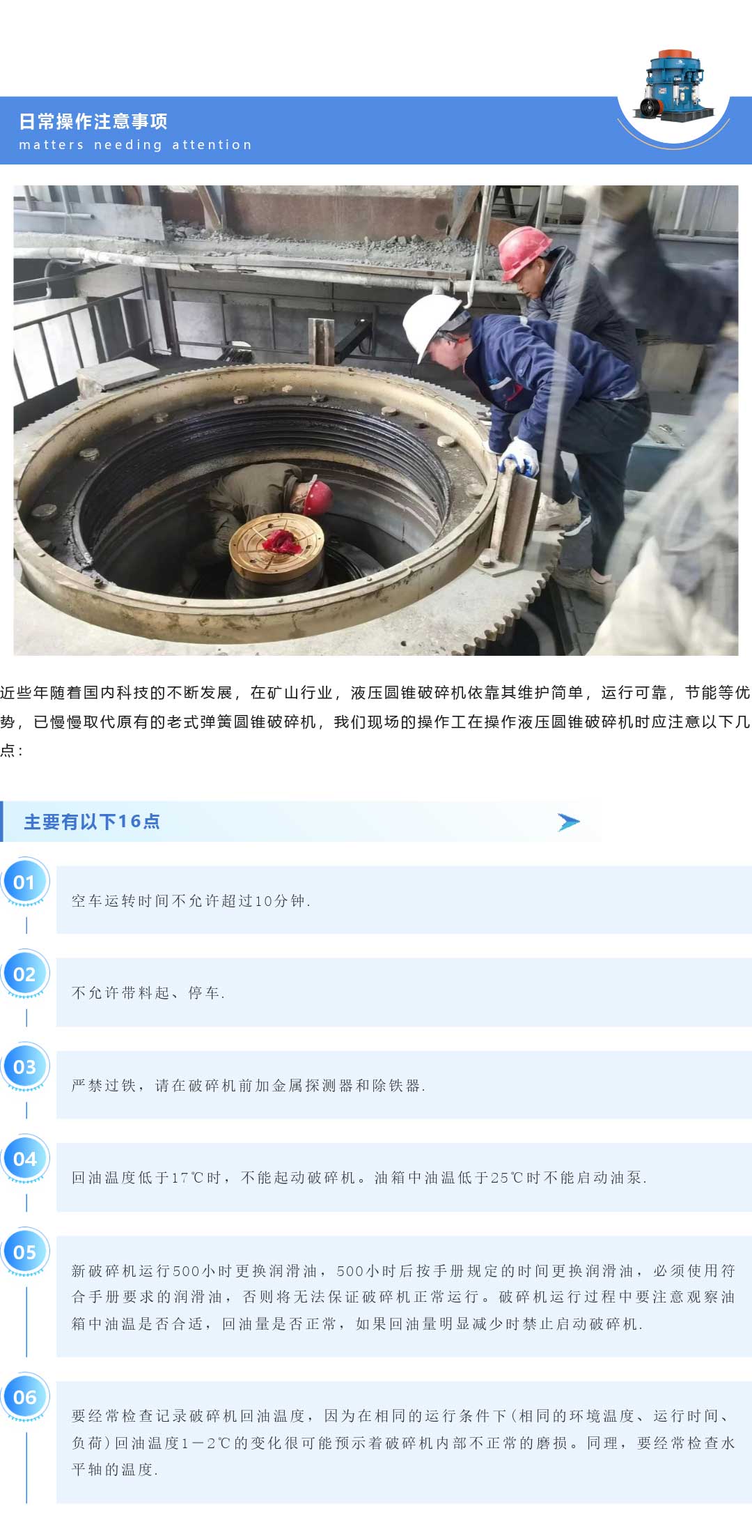 液壓圓錐破碎機(jī)的日常操作注意事項(xiàng)