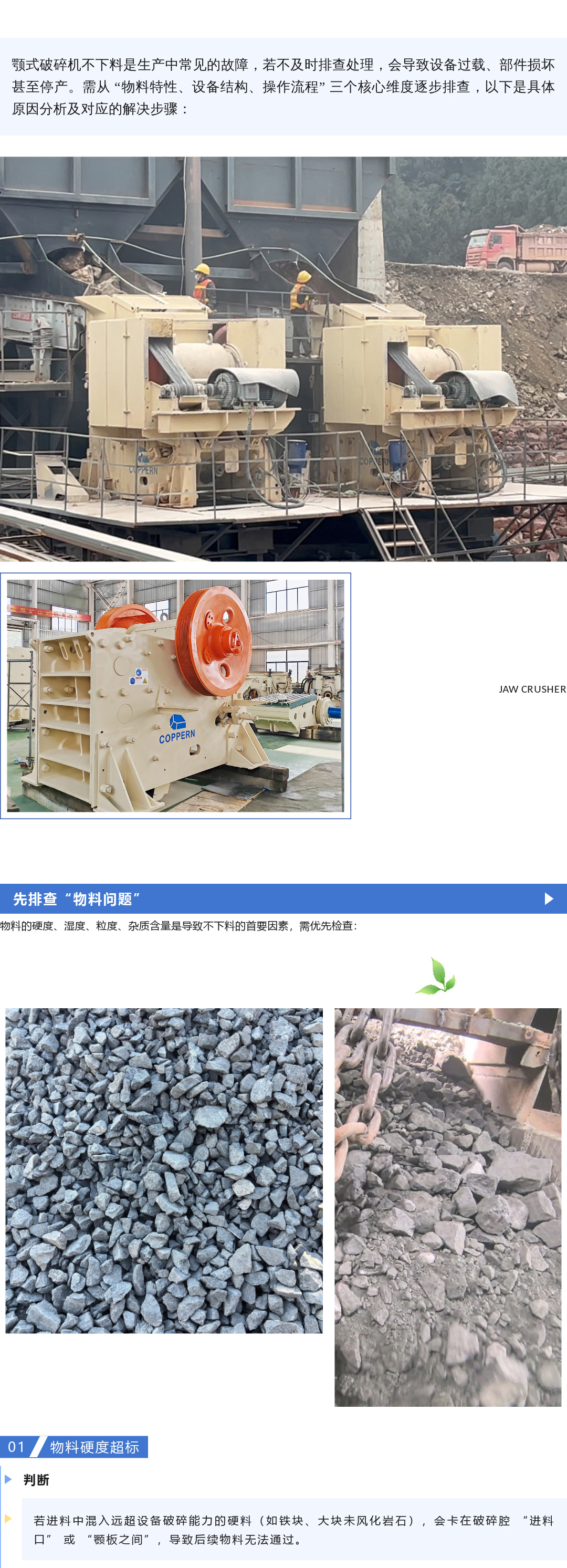 顎式破碎機(jī)不下料的原因及解決方法